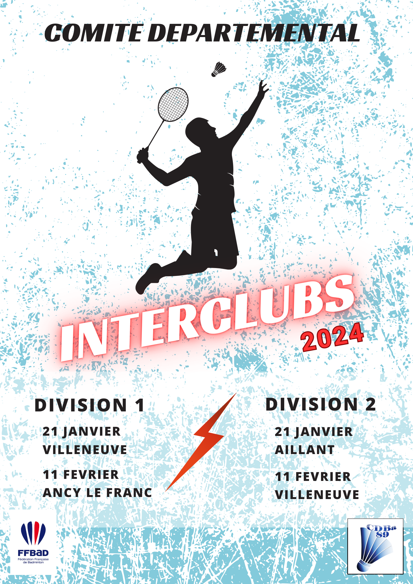 Le CODEP 89 est heureux de vous inviter à ses championnats Sénior Il se dérouleront au gymnase d’Ancy le Franc les 14 et 15 mars