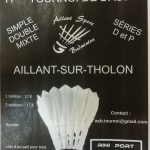 Le club d’Aillant sur Tholon organise la 11ème édition de son tournoi. Ouvert aux simples, doubles ,mixte en séries D et P